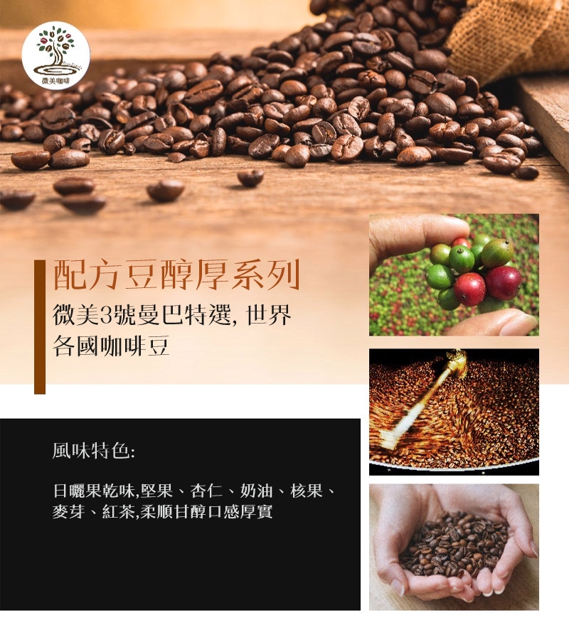 商品名稱:[微美咖啡]-配方豆醇厚系列,微美3號曼巴特選,世界各國咖啡豆