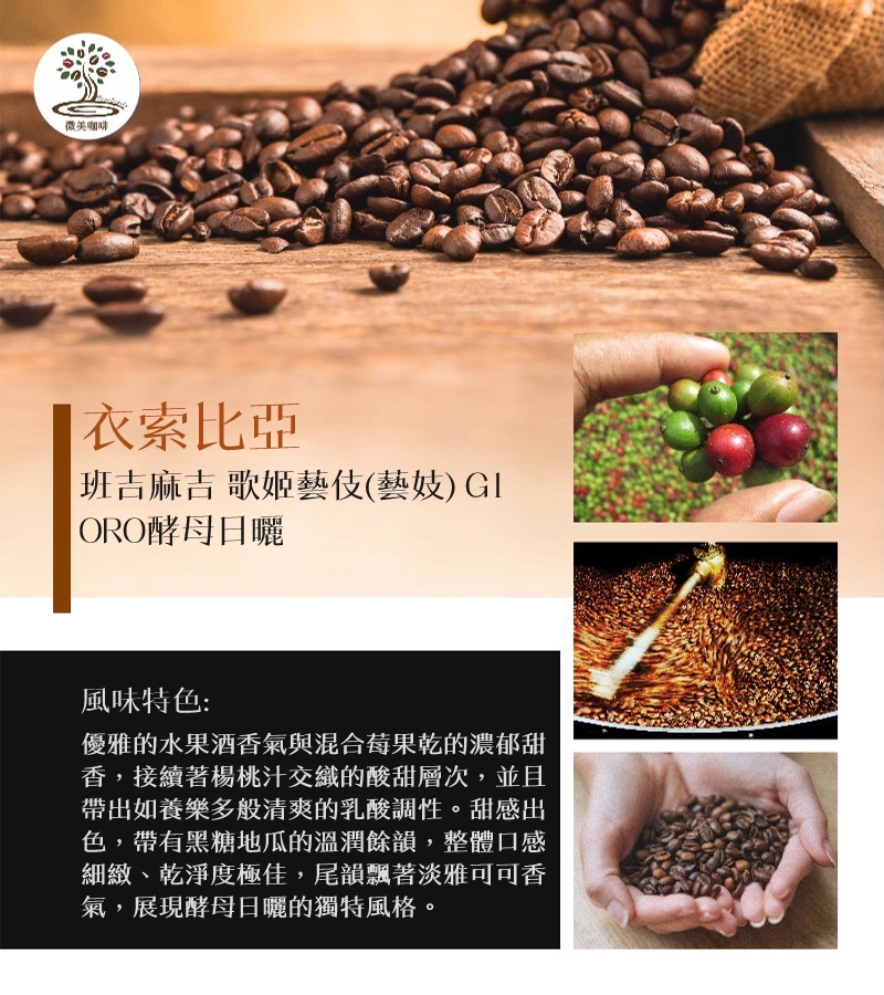 [微美咖啡]半磅525元,衣索比亞 班吉麻吉 歌姬藝伎(藝妓) G1 ORO酵母日曬 淺焙咖啡豆,新鮮烘焙