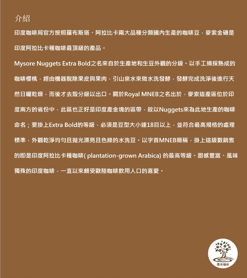 商品名稱:[微美咖啡]-印度 麥索金磚 India Mysore Nuggets咖啡豆