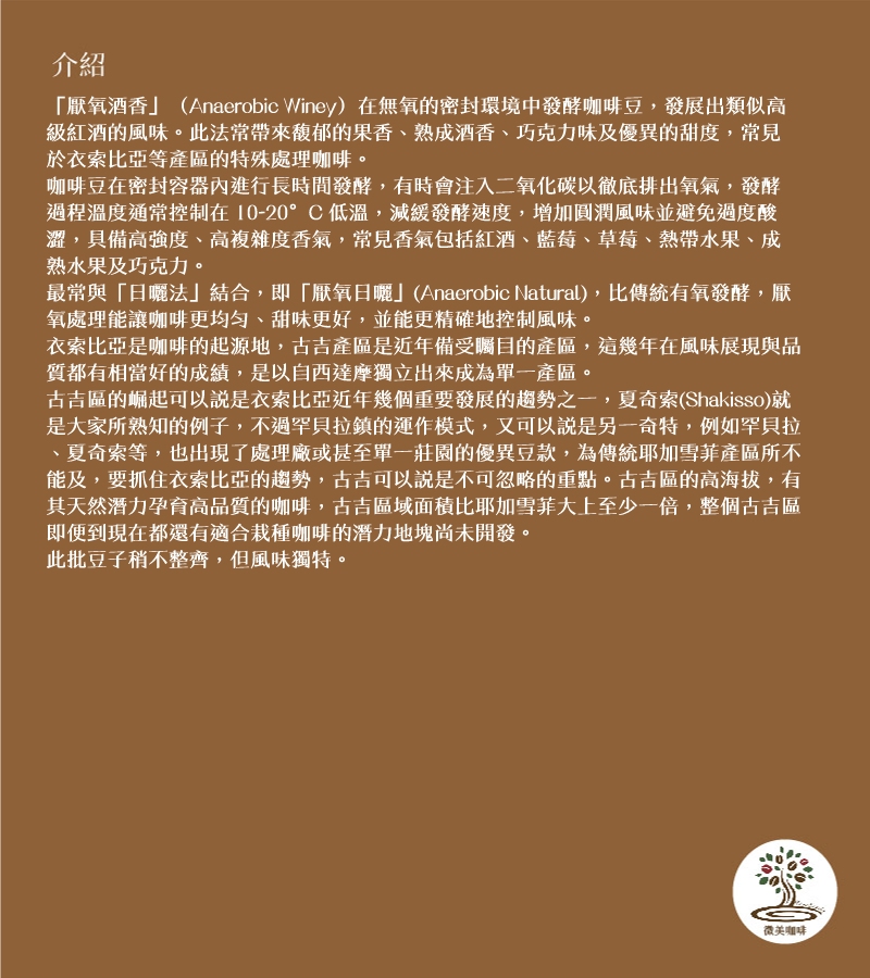 商品名稱:[微美咖啡]-衣索比亞 古吉 罕貝拉 日曬酒香 厭氧發酵處理法 Ethiopia Guji Hambella Anaerobic Winey 咖啡豆